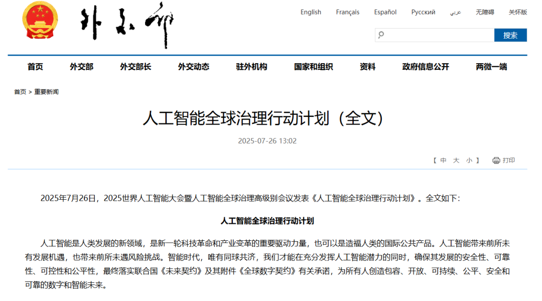 8.2025年世界人工智能大会发布《人工智能全球治理行动计划》