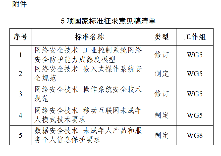 3.关于征求《网络安全技术 工业控制系统网络安全防护能力成熟度模型》(征求意见稿)等5项国家标准意见的通知
